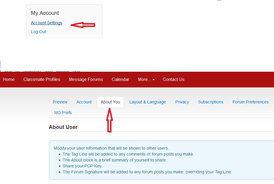 Once your registration has been approved, you can log in to your account. To create your profile, go to your "Account Settings" and select the "About You" tab at the top.